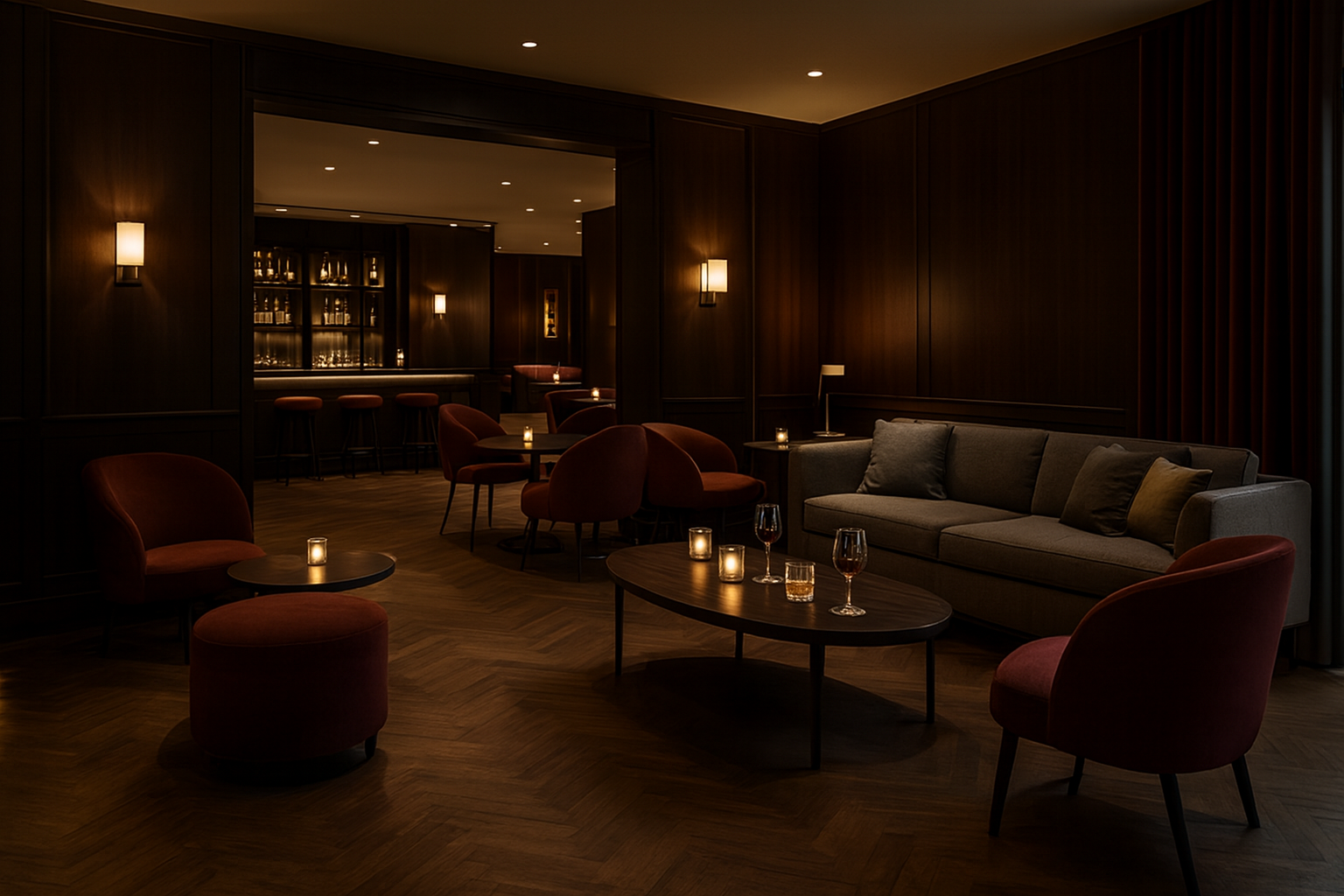 Our lounge is curated, intimate, and intentionally simple — offering a refined selection of our favorite wines and bourbons, paired with a warm ambiance designed for meaningful connection. No full bar. No distractions. Just an elevated, sensory experience crafted for those who appreciate intentional taste and upscale simplicity.
